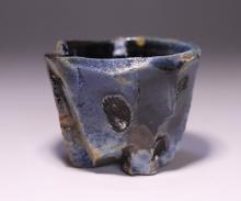 Because the form makes extensive use of spatula cuts, the gradations of natural ash and indigo play across the planes of the vessel, adding further dimensionality to its superb coloration.