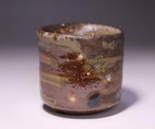 size : W6.8cm×6.6cm×H5.2cmBorn in Imbe and a lifelong devotee of Bizen, Takashi Baba creates for the sheer joy of making. This is his latest Bizen Yohen Ao Guinomi, fired in June 2025 in his newly built noborigama.