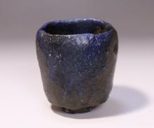This is a newly fired black Guinomi by Masao Akiya, just released from the kiln.