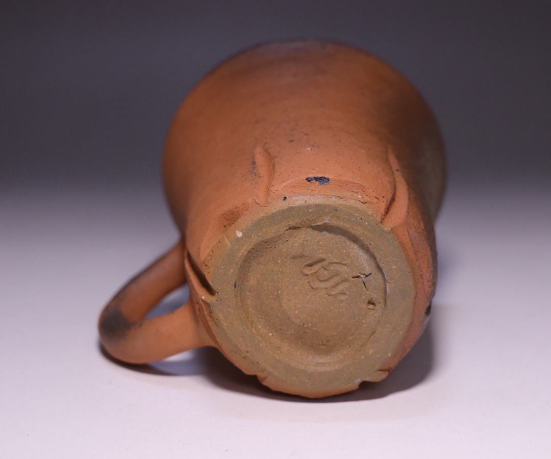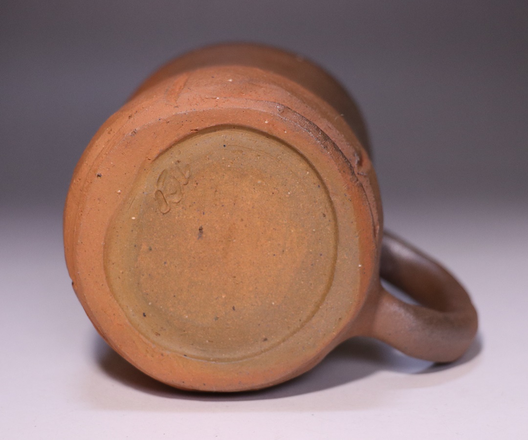 Unusually for Takariki, this mug features a bold, heavily tooled “yamamichi” band around the waist, and together with the aforementioned clay character it conveys an exotic, non-tatsuchi mood compared with his usual works.