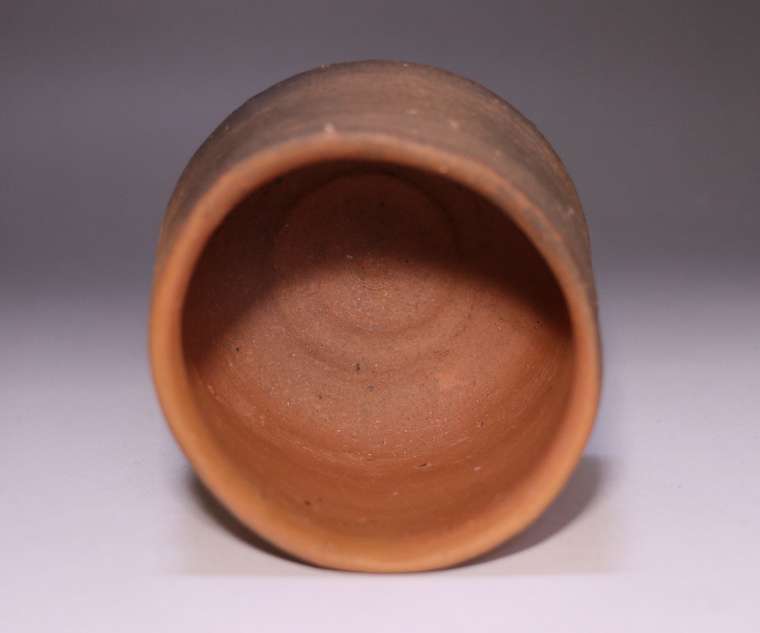 size : W7.5cm×7.3cm×H7.4cmRun by two potters who trained under Yuho Kaneshige, Toukoubou Yu presents an Imbe Hidasuki yunomi that embodies restraint: within the rigorously unadorned form, subtle undulations in the clay quietly convey the maker’s hand.