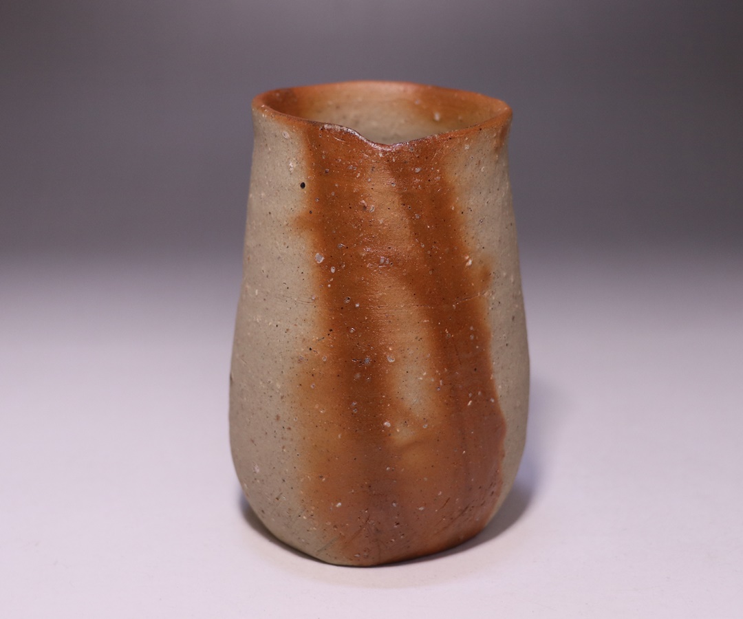 繊細で優雅な土味と力強い造形の調和により多くの人々を魅了する金重 愫先生の緋襷麦酒呑です。