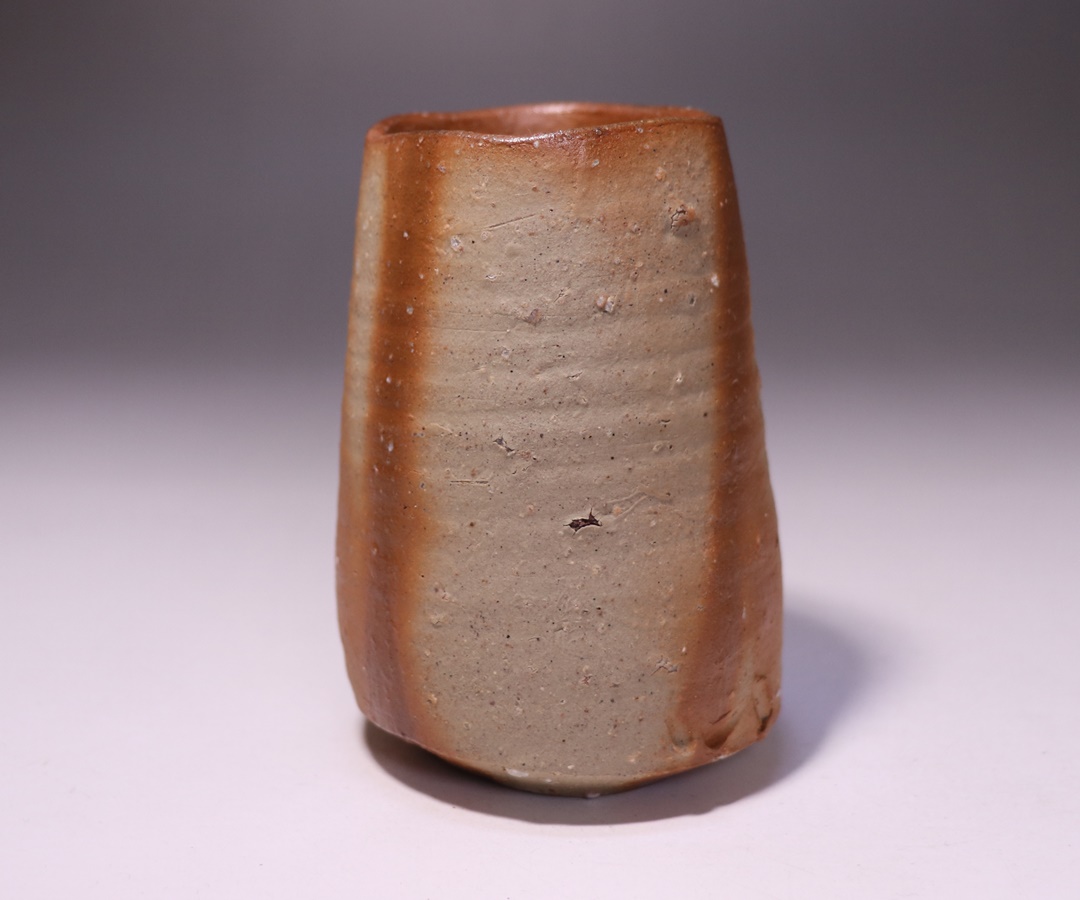 繊細で優雅な土味と力強い造形の調和により多くの人々を魅了する金重 愫先生の緋襷麦酒呑です。