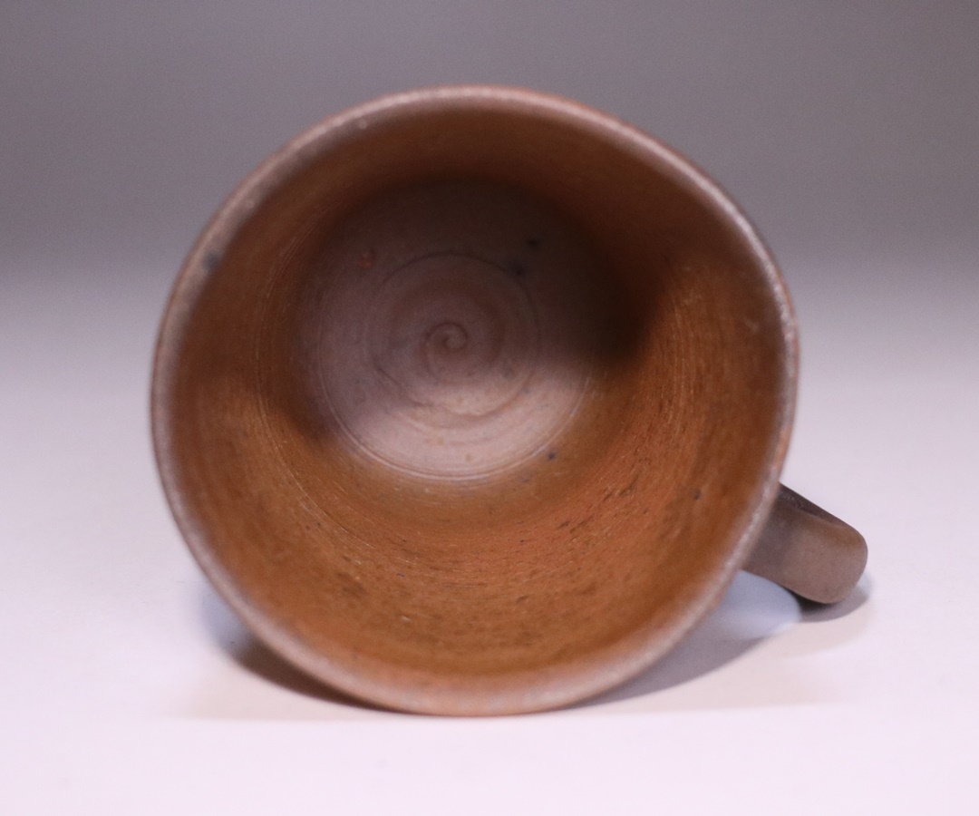 今回のマグカップでは、高力先生には珍しく腰回りに箆で大きく山道を付けており、