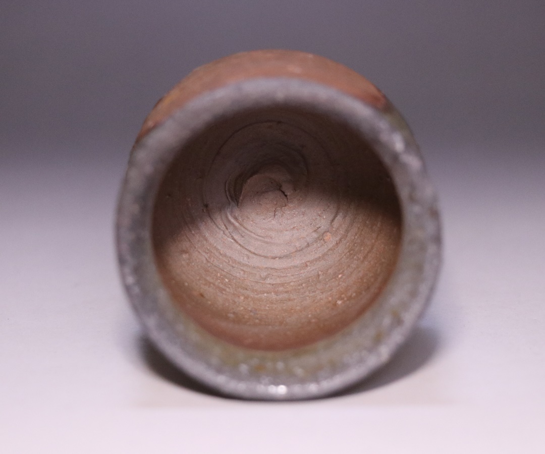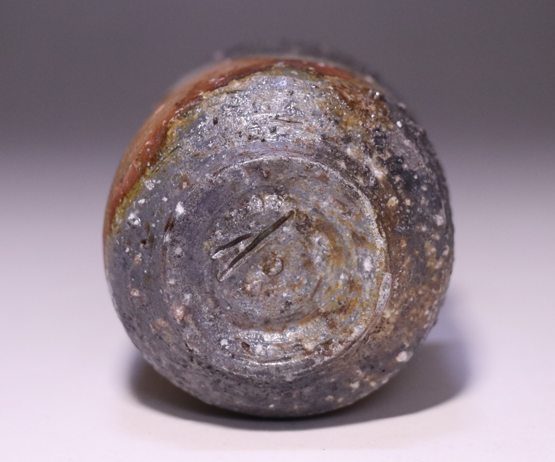 登り窯にも匹敵する強い灰被りの中に、穴窯特有の景色が出ており大変美しいです。