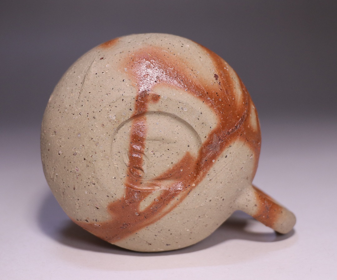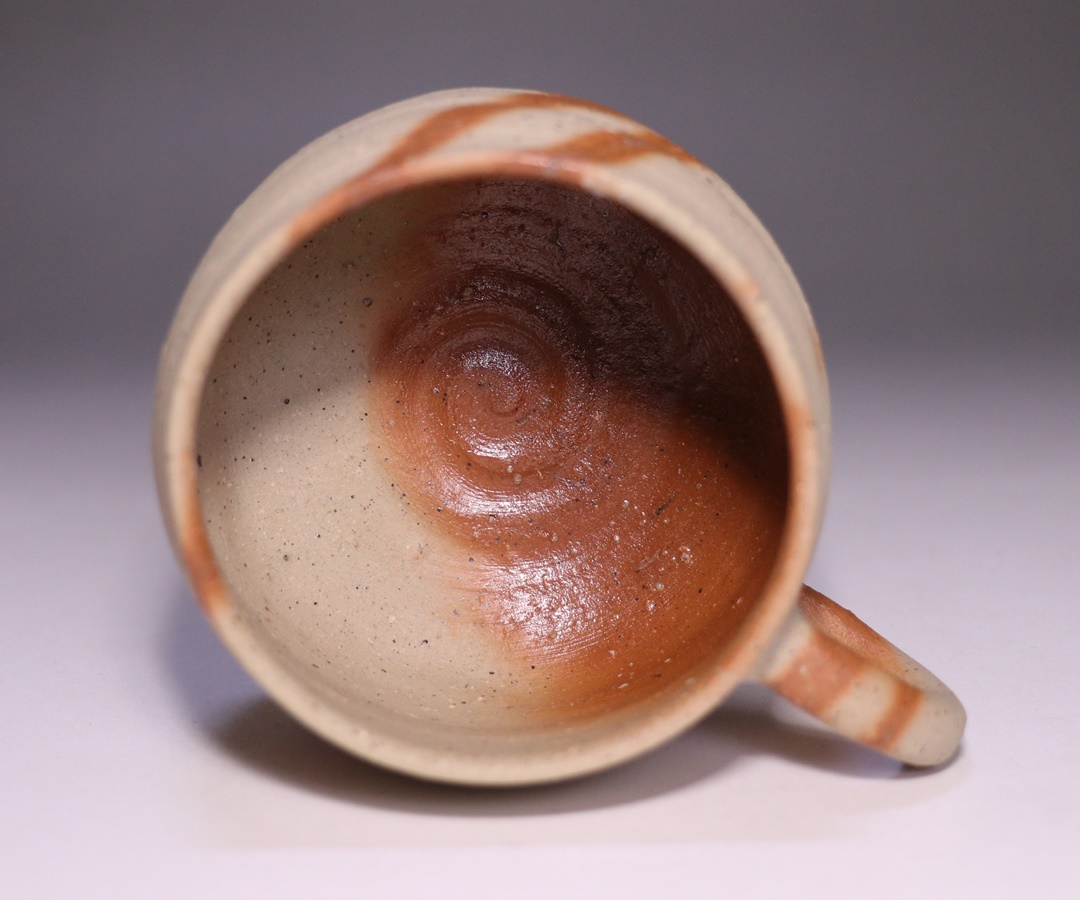 窯出しされたばかりの新作備前火襷マグカップです。