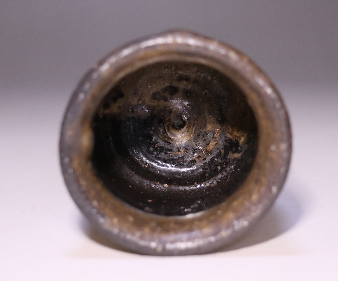 窯出しされたばかりの新作備前黒酒呑(ぐい呑)です。