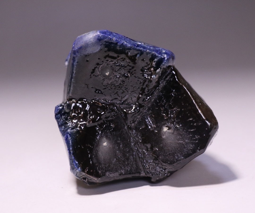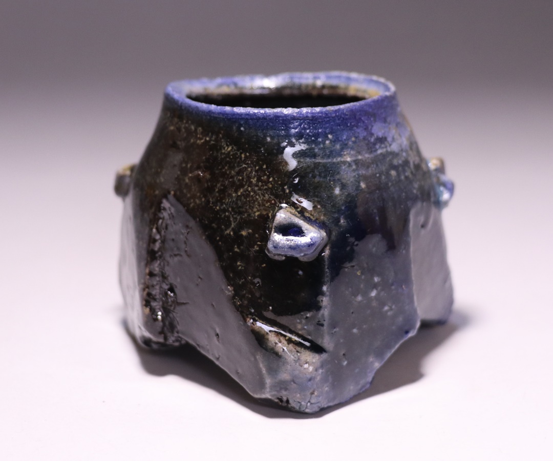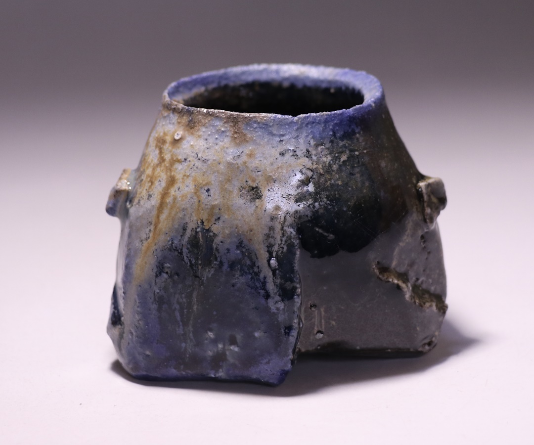最高温度付近を比較的長時間じっくりと焼き抜くことで、冴え渡る青窯変を現出させています。