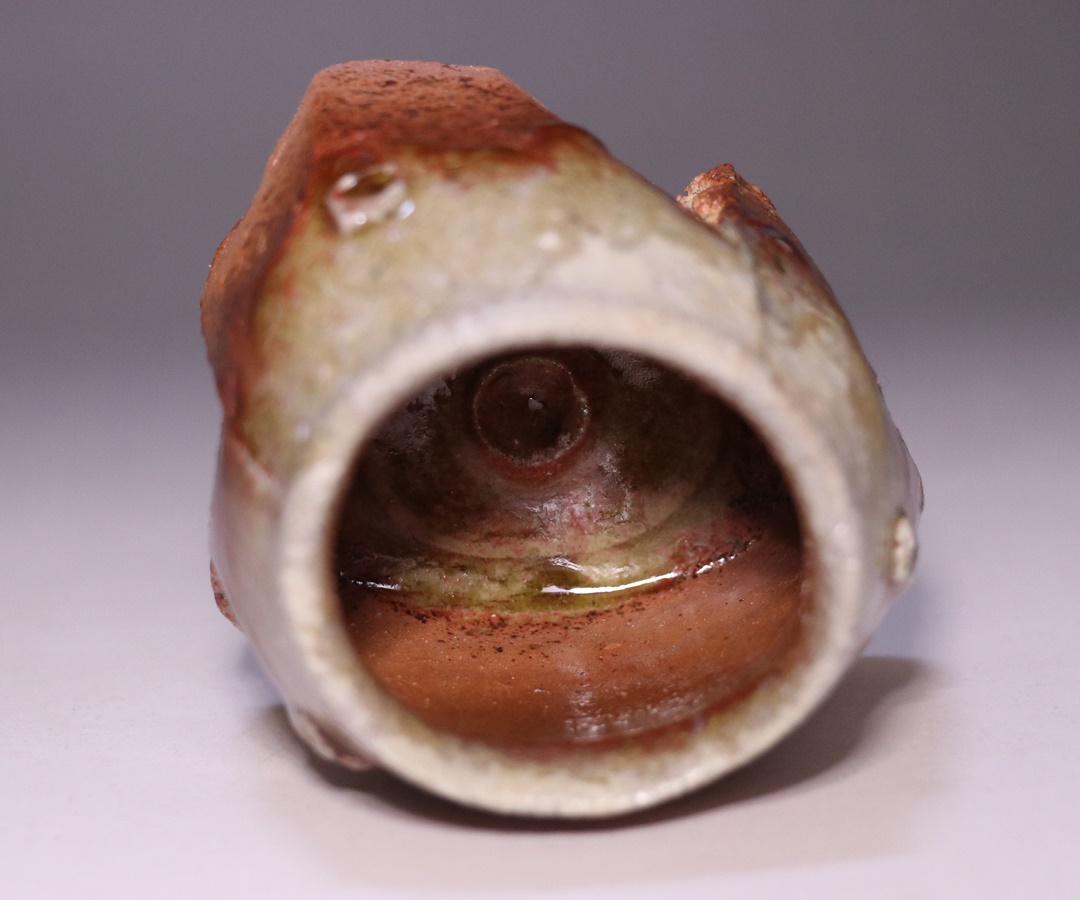 自然釉が当たった箇所は明るい茶褐色の窯変が発生しています。