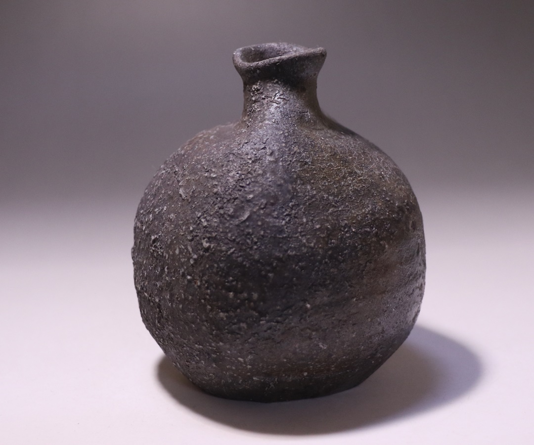 金重 愫先生の窯出しされたばかりの新作備前扁壺徳利です。