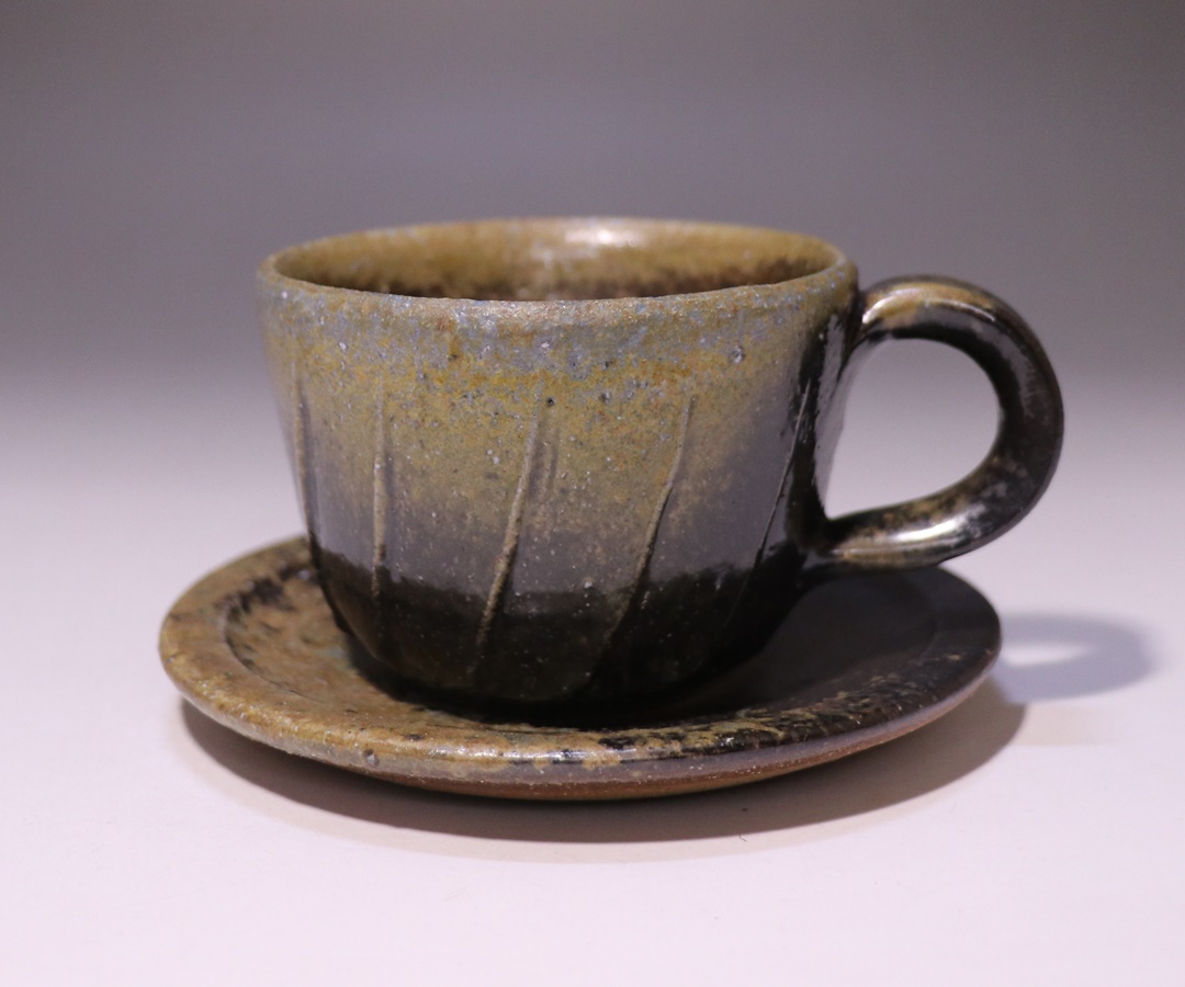 窯出しされたばかりの新作黒カップアンドソーサーです。