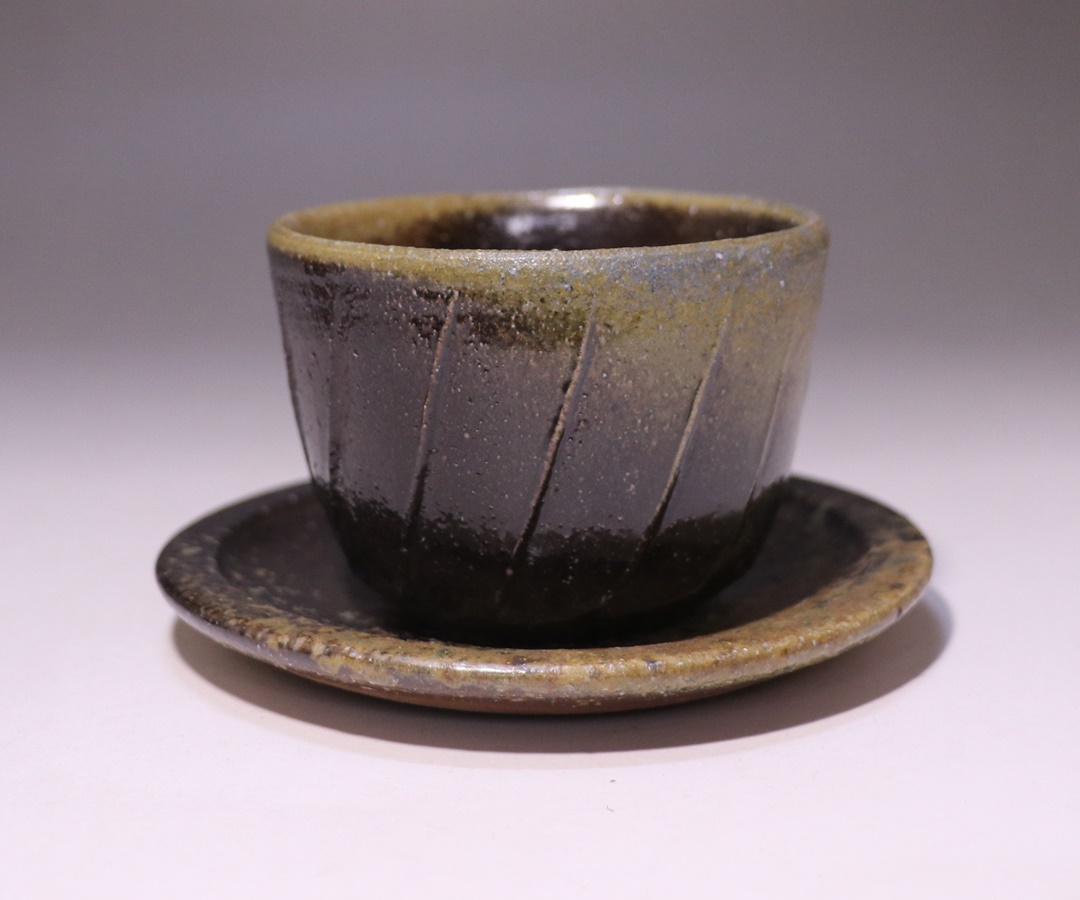本作もまたカップ正面部分に青窯変が発生しており、非常にインパクトのある景色となっています。