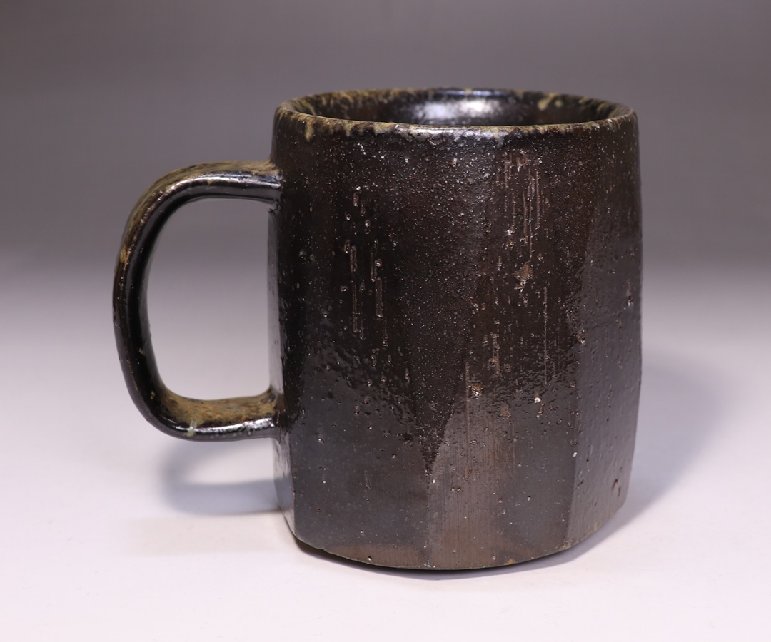 秋谷昌央先生の窯出しされたばかりの新作黒マグカップです。