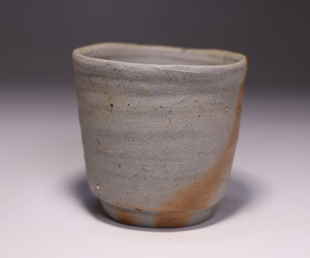 円山窯にて焼き締めてしっとりとした肌合いとなった緋襷酒呑です。