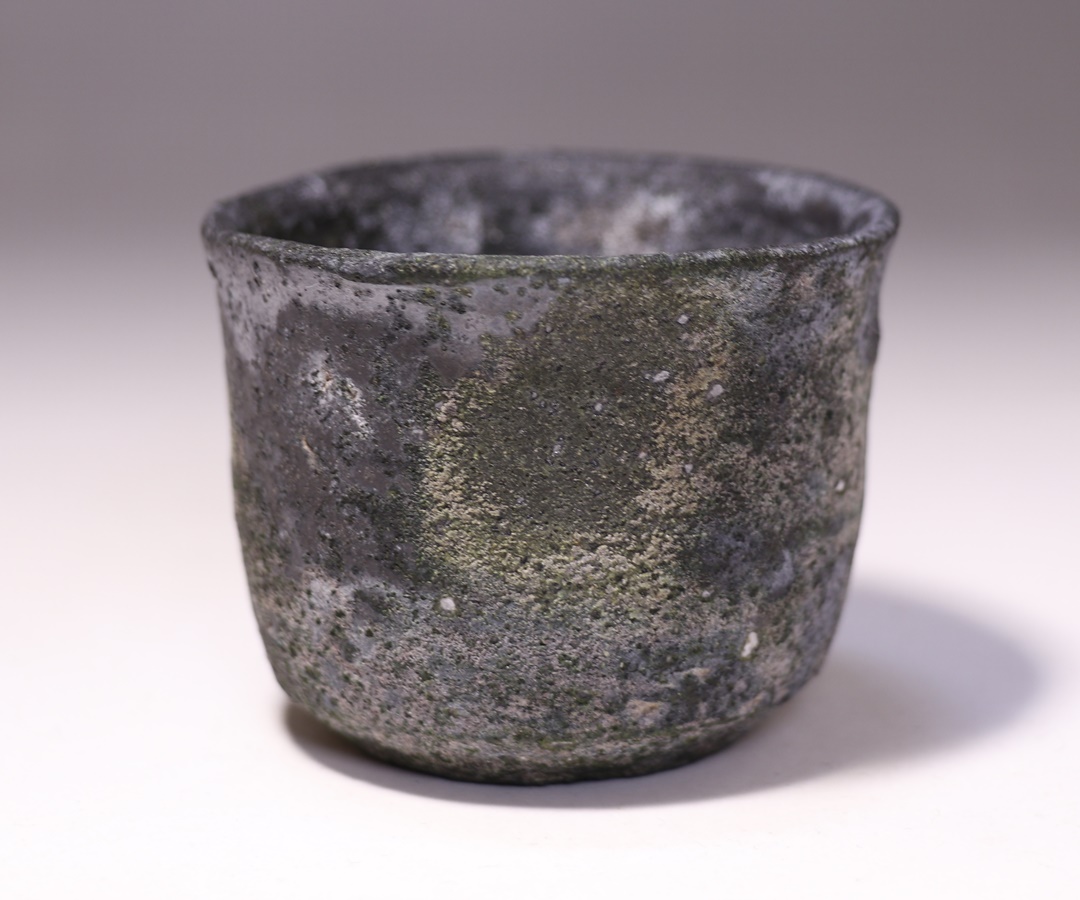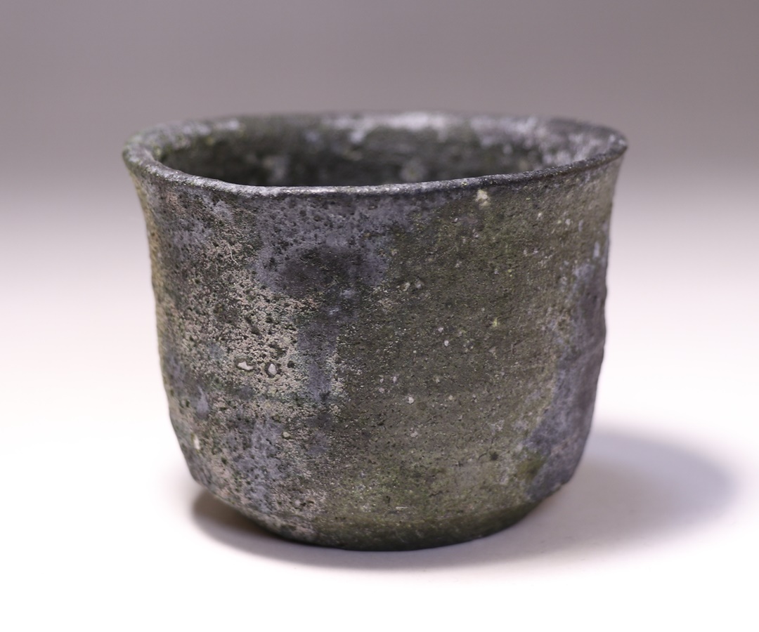 名にこだわらず探究心の赴くまま作陶する金重充宏先生の青備前桟切手酒盃です。