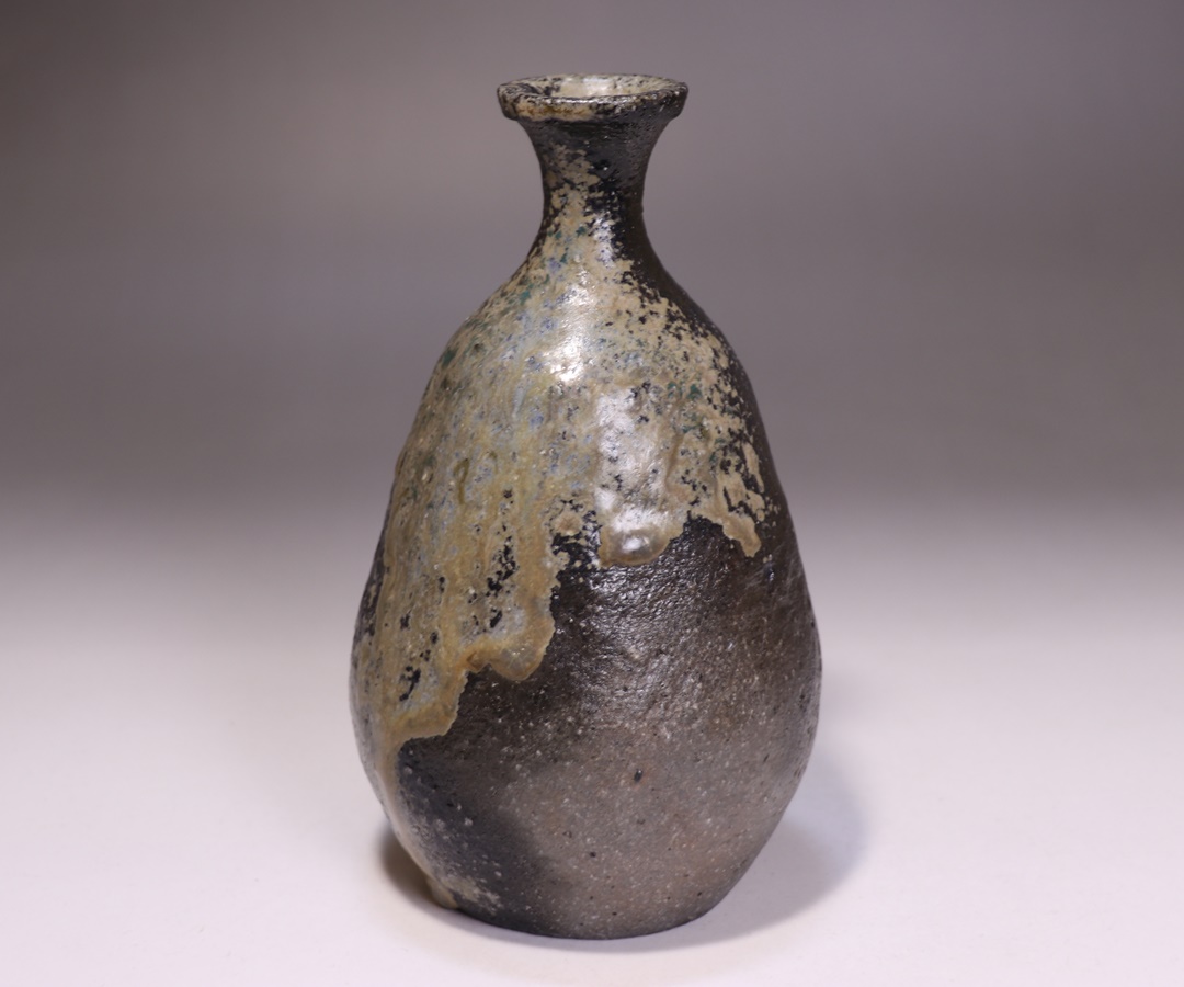 手に取ってみて改めて塗り土ではなく、焼成方法による色合いと分かる面白い徳利です。