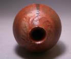 豪放と緻密さを併せ持つ色褪せない名工 藤原 建先生の備前徳利です。緋襷に定評のある建先生らしい、色合い質感共に風情溢れる素晴らしい緋襷となっています。まるで表裏の如く二通りの緋襷で器肌を飾っており、鉄が焼き付いたような黒い緋襷、その黒襷に隠れるように地肌に馴染んだ濃厚な緋襷が、ベースとなる赤みのある土味に蕩けるような風情を加味しています。白抜けから垣間見える土味は紛れも無く良質の陶土のそれであり、師である金重陶陽先生を髣髴とさせるきめ細かで柔らかな味わいを持っています。首には隠し包丁のように目立たない細かな箆削りを入れており、丸みのある優しい蕪型を引き締めて面白い緩急を生み出しています。(口縁部に小さな剥がれがあります、予めご了承下さい)