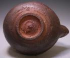 優れた美的感覚を持ち、土と焼きと造りに於いて常に進化し続ける森本良信先生の新作備前片口です。森本先生が得意とする古備前調の焼成に、初期唐津のエッセンスを加えた渋い存在感が光る片口です。唐津風らしくけれん味のないあっさりとした造形ですが、随所に森本先生らしい工夫が凝らされており、食器としても酒器としても使える完成度の高い作品に仕上がっています。古備前の土味を見事再現しており、重厚な紫蘇色の肌に芥子色の胡麻が非常に細かく飛散しており、肌を間近で見ても古備前となんら遜色がありません。唐津風のエッセンスは高台にも活かされており、唐津高台の縮緬皺が備前土で見事に再現されています。