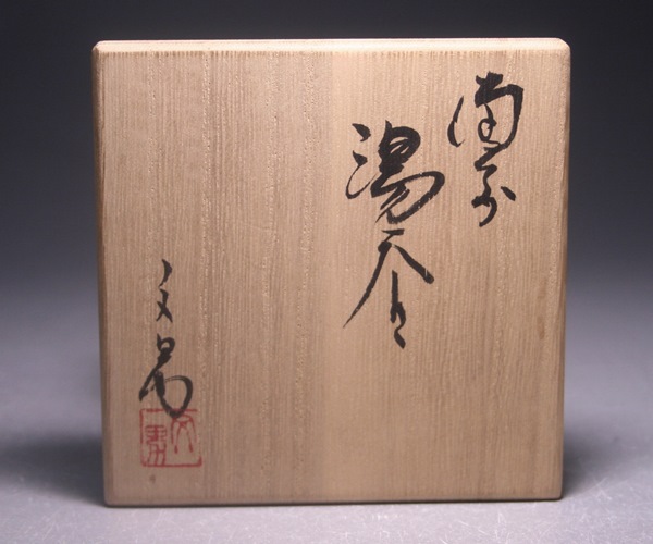 グラフィックデザイナーから備前焼作家へ転身し、土の持つ可能性を引き出した独創的な作品を手掛ける川端文男先生の自然練り込みの備前湯呑です。原土の状態での土の成分のバラつきを敢えてそのまま利用し、成分の違いによってマーブル状の肌となった自然練り込みの湯呑です。何よりも特徴的なのはそのマーブル状の色合いですが、実は練り込み作品は質感も非常に良くなっており、柔らかな和紙や最高級の土壁のようなしっとりとした得も言われぬ質感となっています。腰には波形図のような緋襷と一点に集中したカセ胡麻が出ており、柔らかな白の肌の中に味わい深いアクセントとなっています。(※平成15年頃の陶暦書が同封されていますが、使用感や汚れは全くありません)