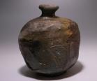 優れた美的感覚を持ち、土と焼きと造りに於いて常に進化し続ける森本良信先生の窯出しされたばかりの新作備前酒盃です。森本先生自身が「被り物」と表現する備前手の作品で、胡麻や桟切などが幾重にも重なり合い、重厚な窯変の着物を形成しています。しかし本作の肝はそこではなく、あくまでもその被り物を焼成する過程で生まれる絶妙な「抜け」であり、堅く焼きしまった肌の中に生まれる極上の陰影が見事です。現代備前でよく言われる甘焼きの抜けではなく、古備前の肌に確かに存在していた焼き締まった抜けを追求し、濃厚なチョコレートのような土肌に被り物と抜けを加えて立体的かつ濃密なテクスチャーを完成させました。その過程でこそ生まれる重厚な被り物も逸品で、濡れたような桟切や摘み上げられそうな黄胡麻も素晴らしいです。単に強い焼きだけを狙って焼き込んだり、逆に柔らかい土味だけを狙って焼き込むのではなく、すべての要素が複雑に絡み合って極上のテクスチャーを生んでいます。本作は李朝の作品にインスパイアされた高台付きの徳利となっており、古陶磁を愛する森本先生らしい見事な造形となっています。