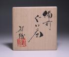 人気作家馬場隆志先生の父で、派手ではなくとも存在感のある作品制作で人々を魅了した馬場祥輔先生の備前酒呑です。浦上善次先生の下で磨き抜かれた陶技が遺憾なく発揮されており、師匠譲りの造形の中にオリジナリティをしっかりと持たせた作品に仕上がっています。かなり轆轤目の強い壺型の造形となっており、胴の中央部分には師匠譲りのワンポイントの箆目が入っています。良く溶けた黄胡麻と金彩の出た紫蘇色が合わさっており、特に金彩の出た紫蘇色の部分は息子の馬場隆志先生によく似た味わいとなっています。胴の中央がくびれており、指をかけて持ちやすくなっています。
