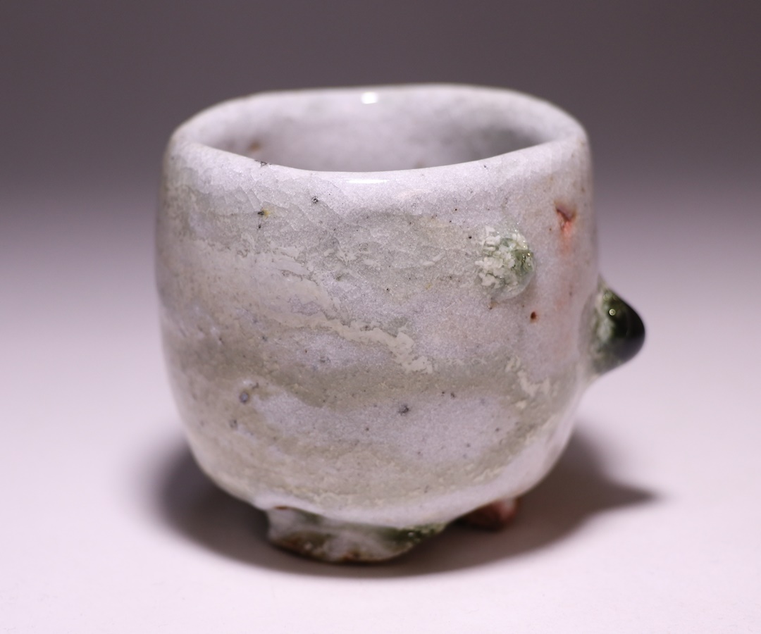 窯出しされたばかりの新作志野酒呑(ぐい呑)です。