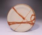 土本来の色合いを生かして白い肌に稲妻のような緋襷を仕掛けています。