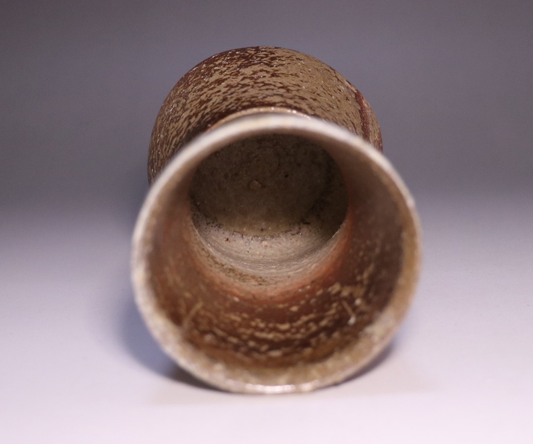 穴窯焼成らしい緋色から飴色へグラデーションした明るめの土肌は、