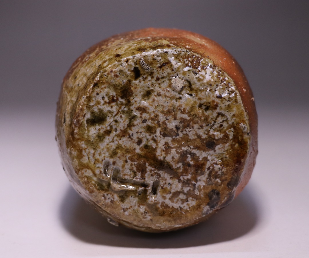 よく溶けてガラス質になった自然釉による琥珀のような窯変が展開されています。