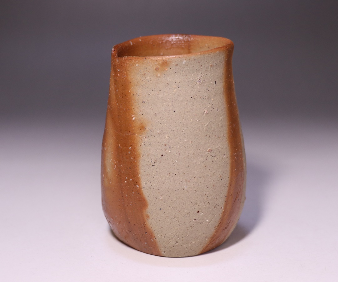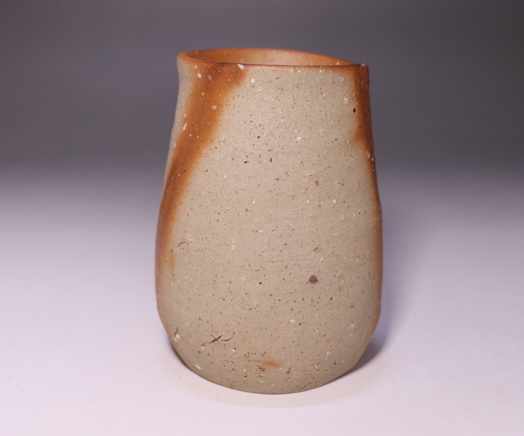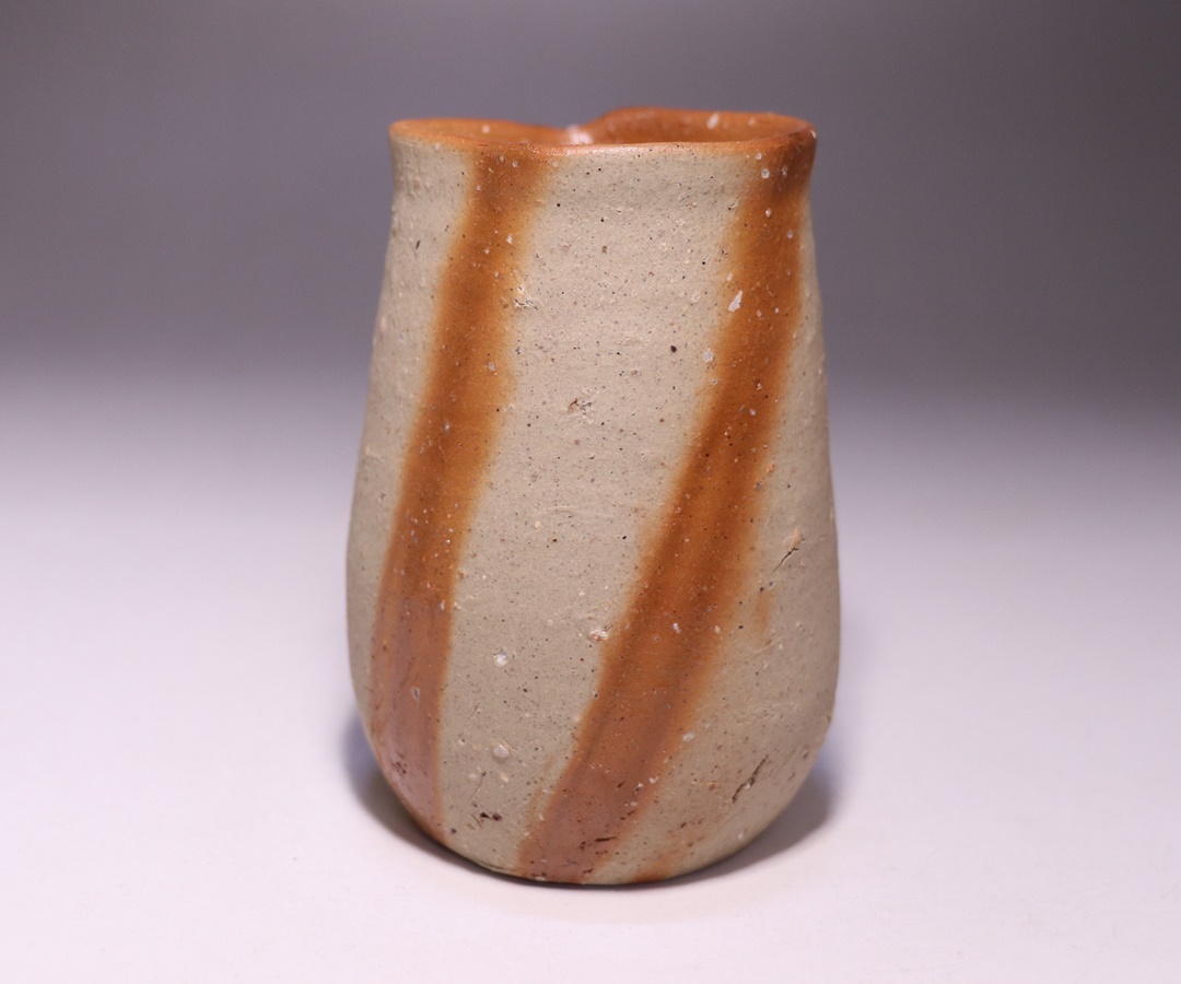 繊細で優雅な土味と力強い造形の調和により多くの人々を魅了する金重 愫先生の緋襷麦酒呑です。
