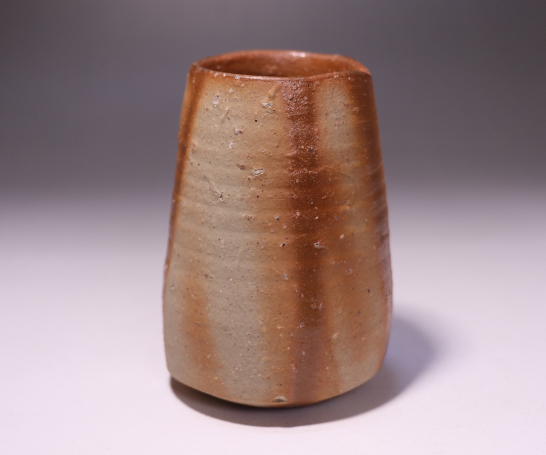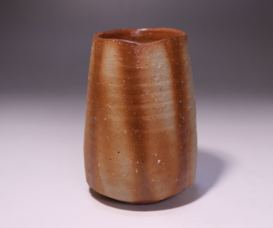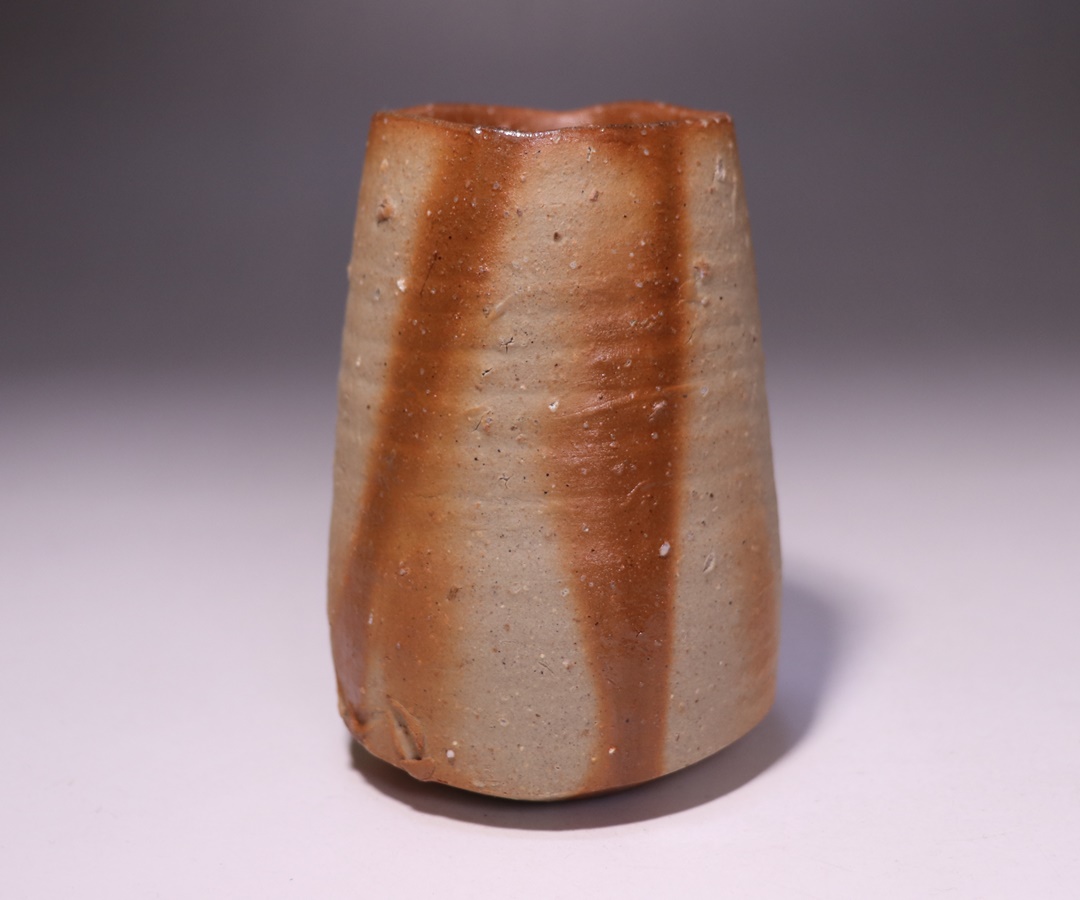 繊細で優雅な土味と力強い造形の調和により多くの人々を魅了する金重 愫先生の緋襷麦酒呑です。