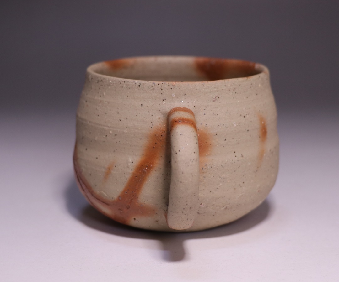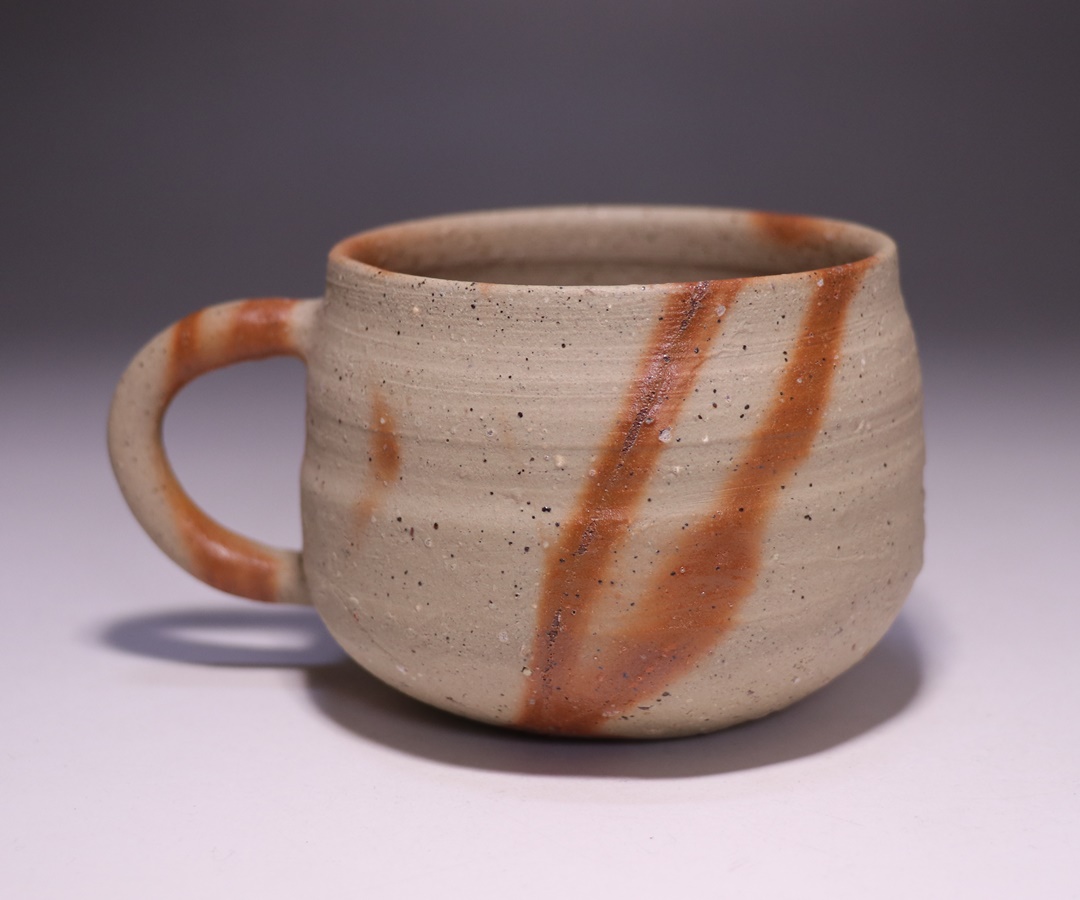 窯出しされたばかりの新作備前火襷マグカップです。