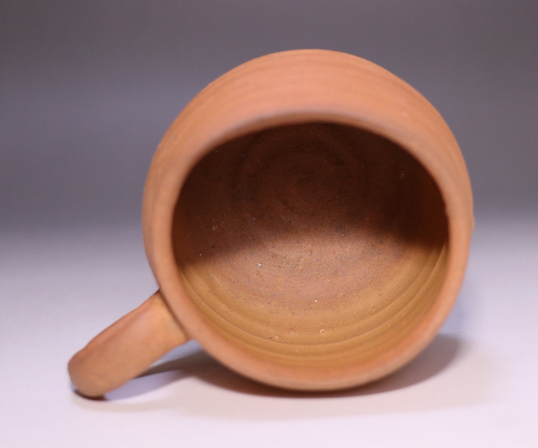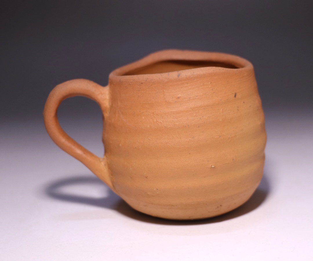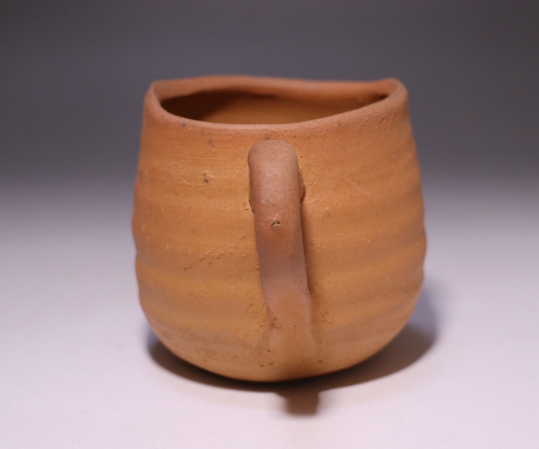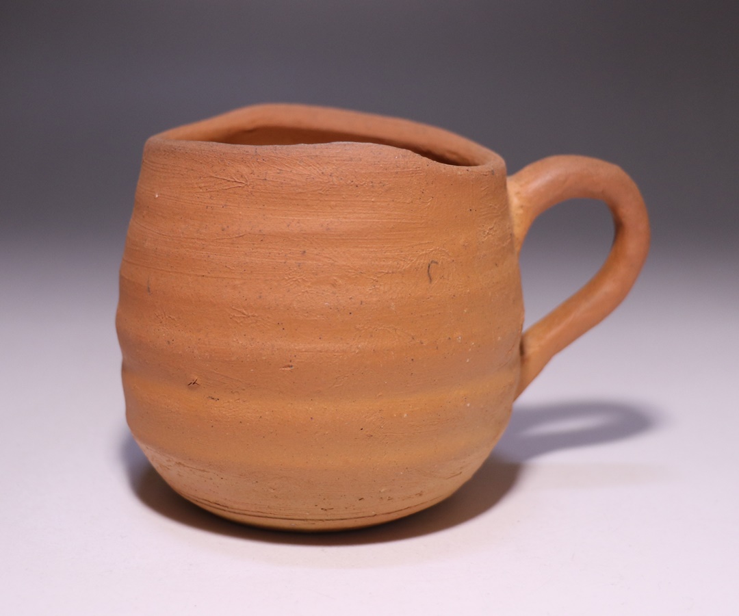 窯出しされたばかりの新作備前マグカップです。