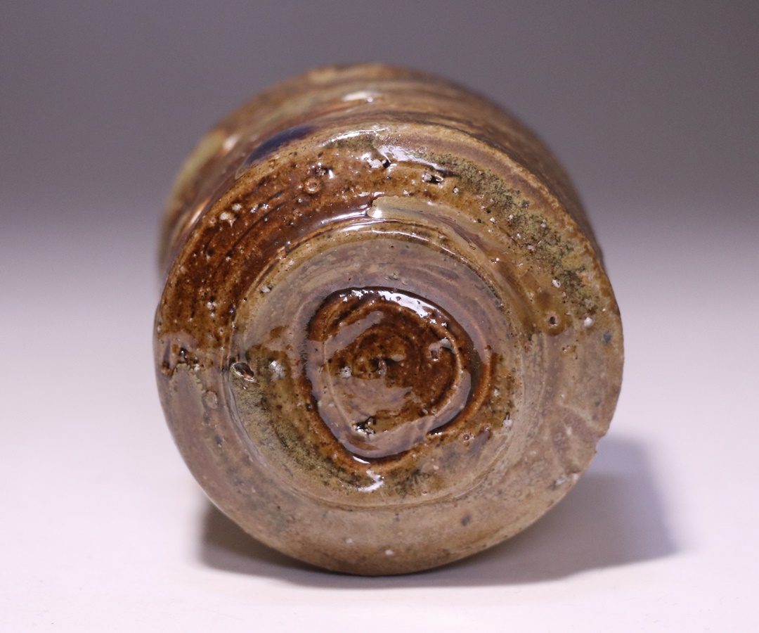 それらが焼成中に正面部分へと流れ落ちて琥珀色の玉垂れを形成しています。