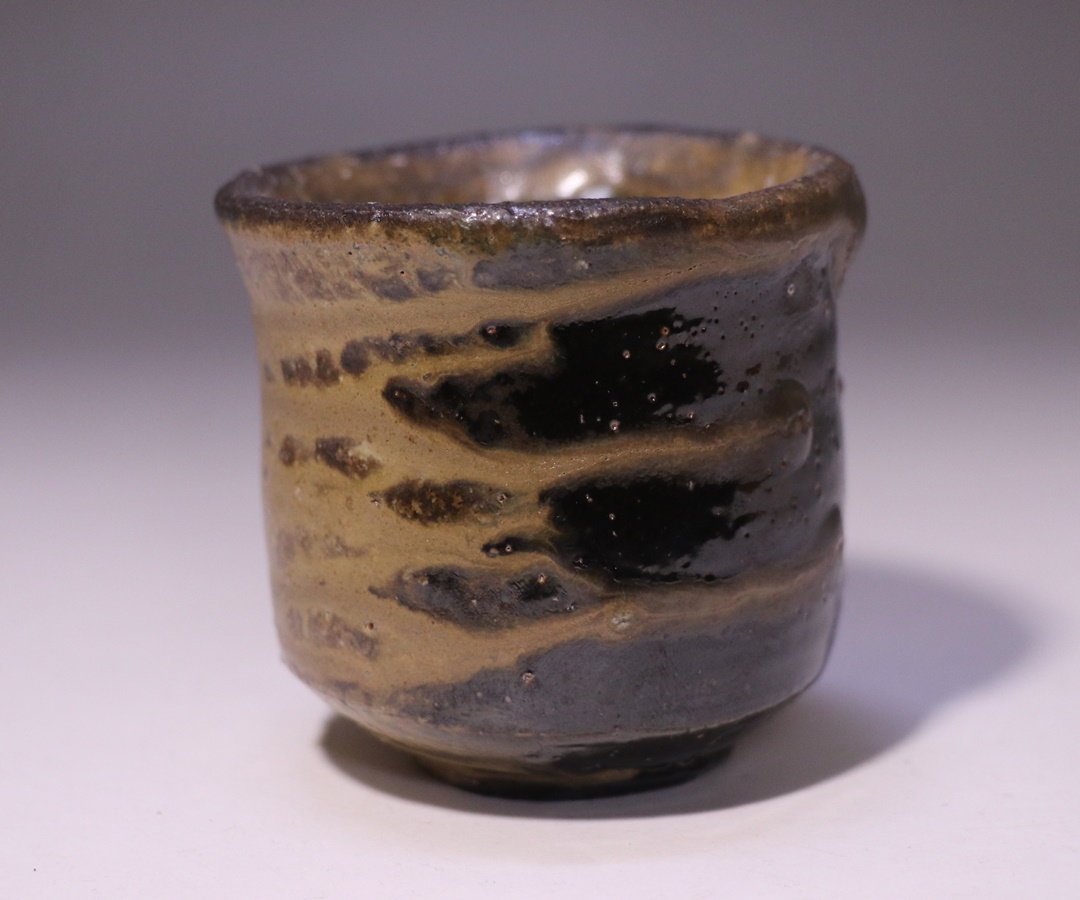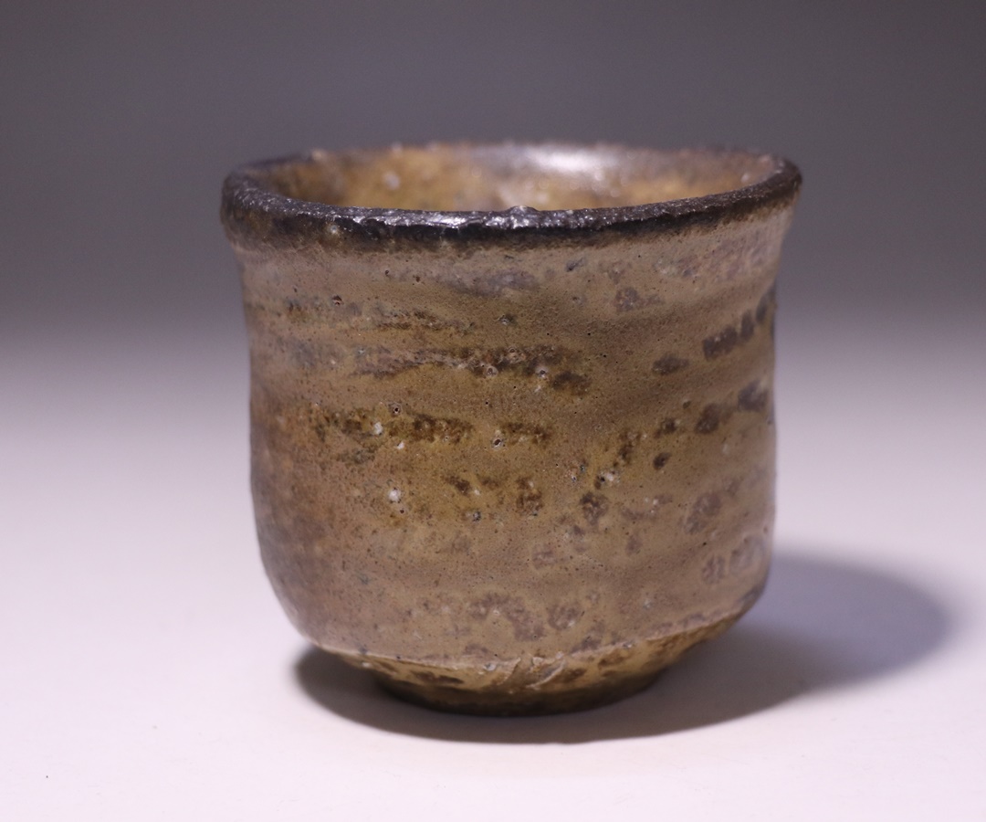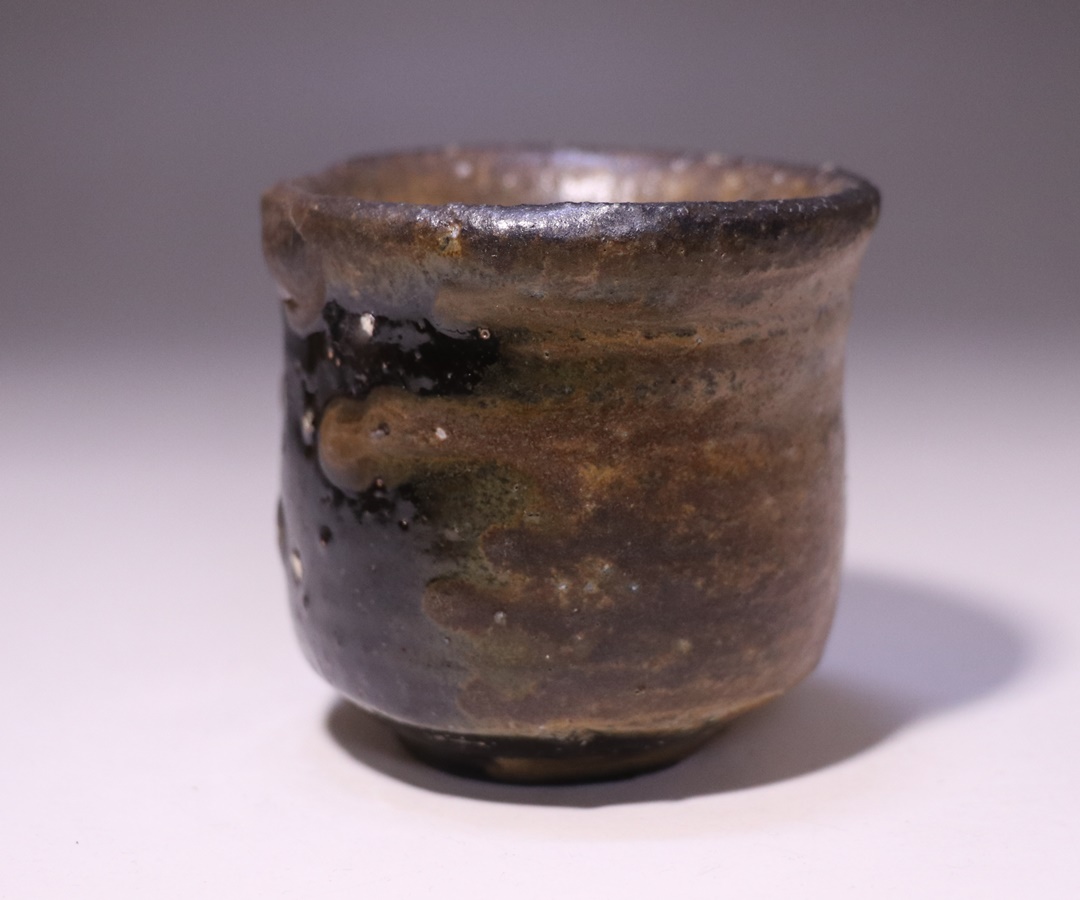 窯出しされたばかりの新作備前黒酒呑(ぐい呑)です。