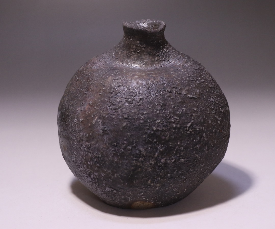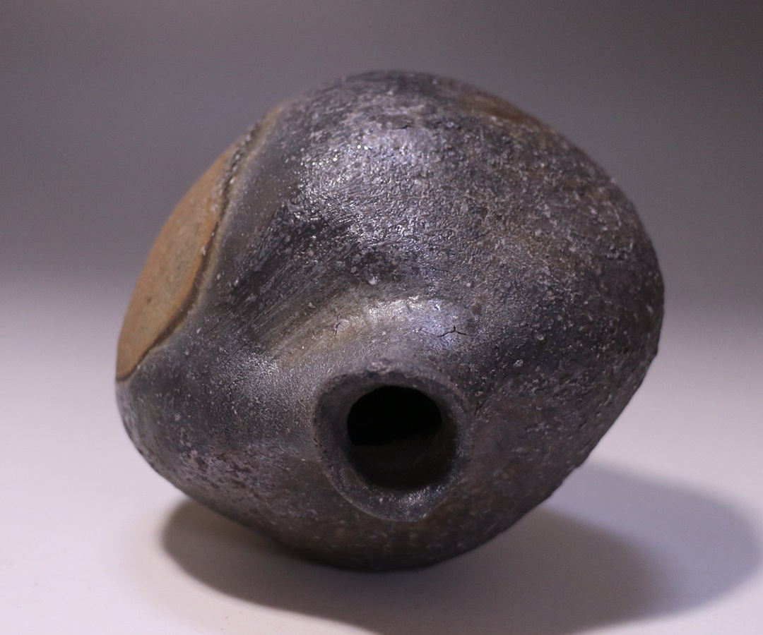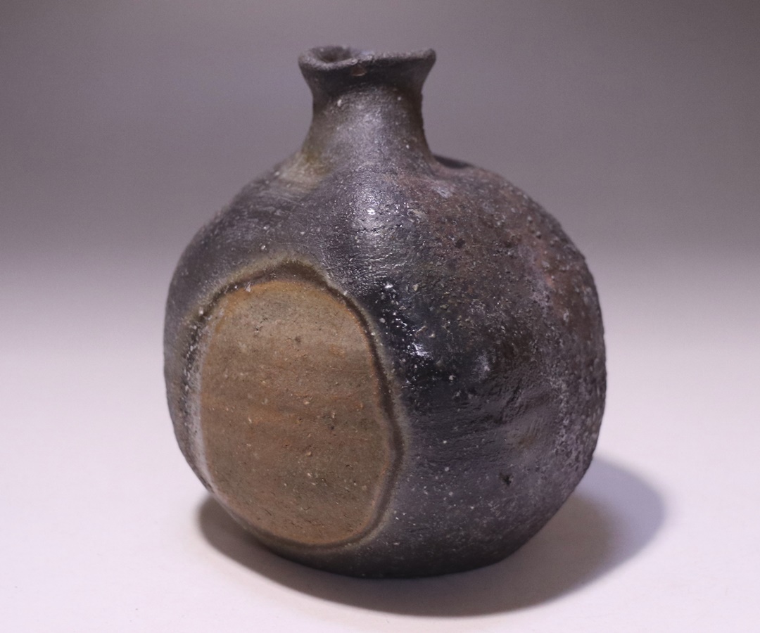 金重 愫先生の窯出しされたばかりの新作備前扁壺徳利です。