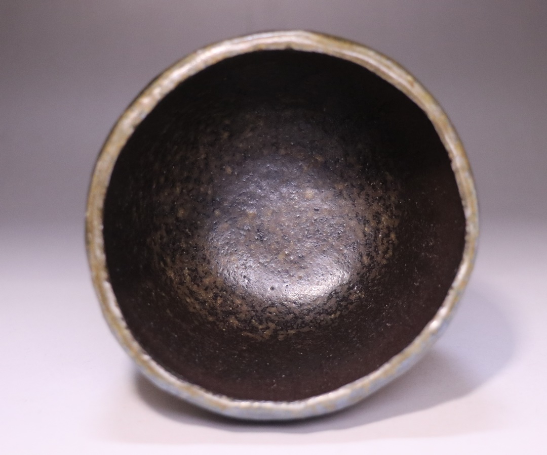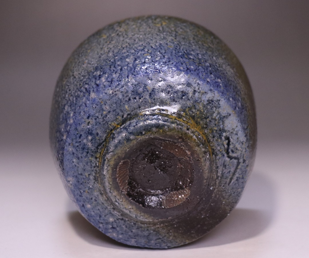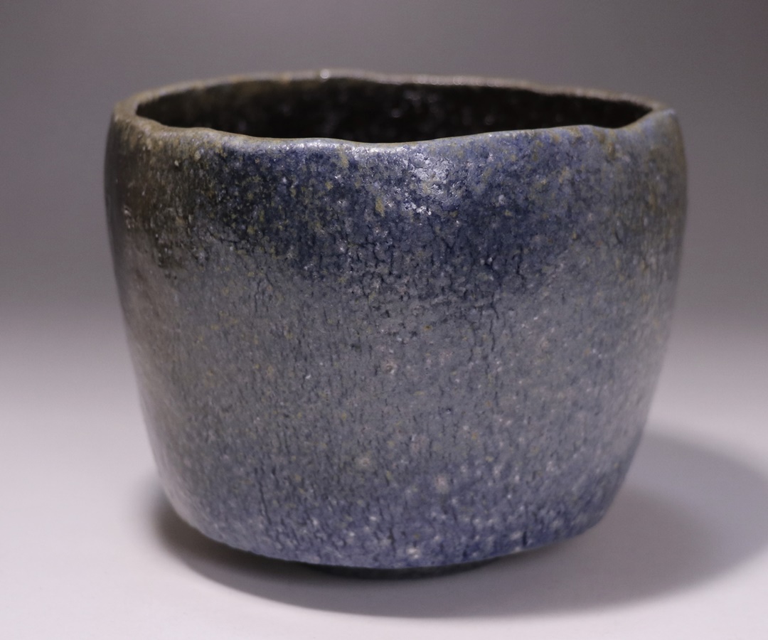 黒作品の魅力の一つに、コバルトと自然釉が反応した通称「青窯変」がありますが、