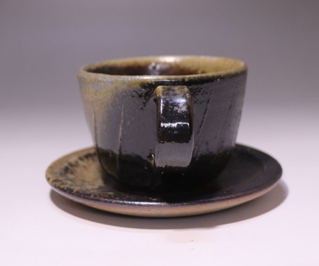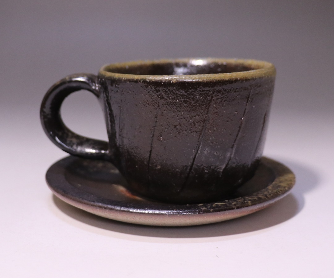 窯出しされたばかりの新作黒カップアンドソーサーです。