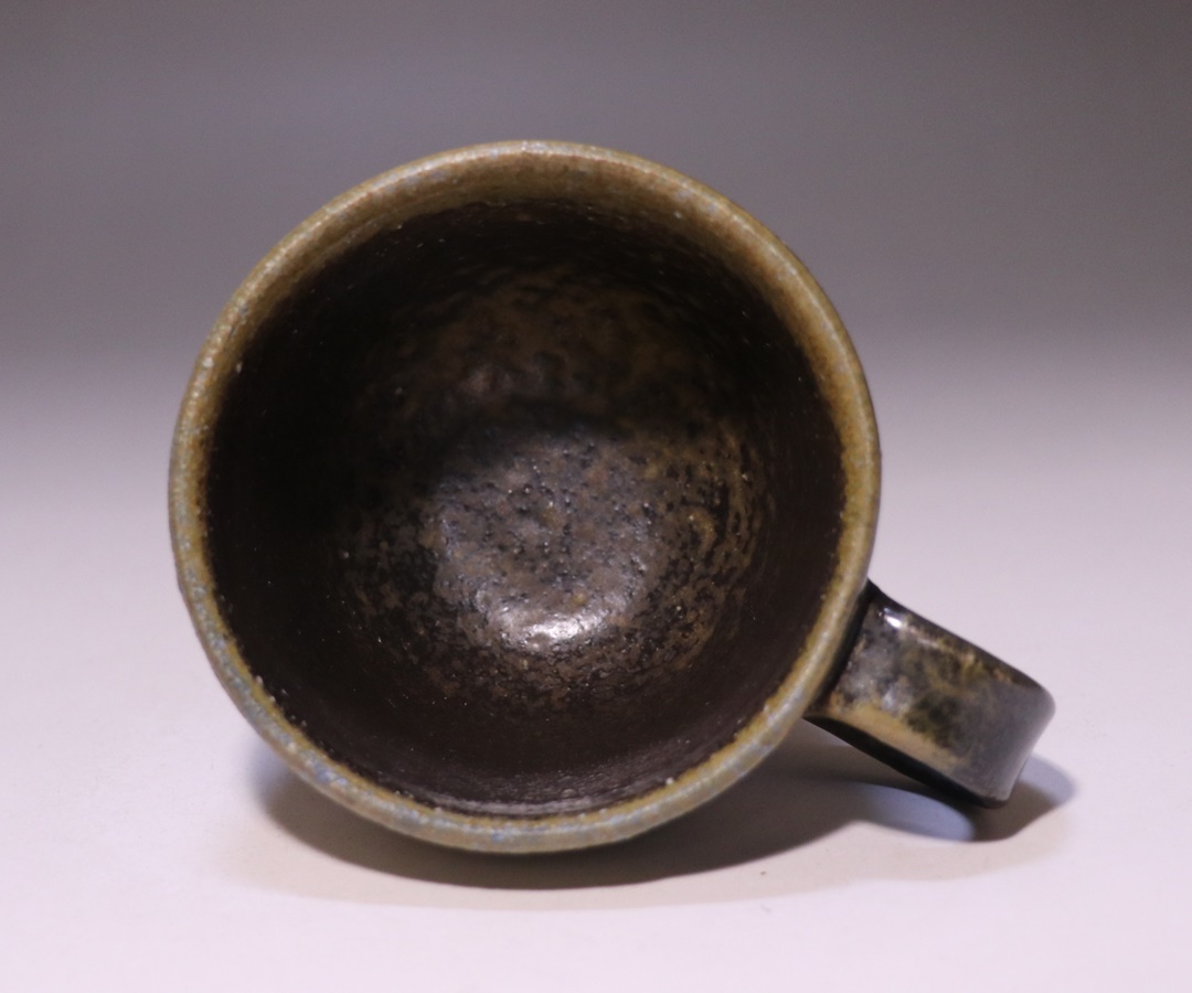 本作もまたカップ正面部分に青窯変が発生しており、非常にインパクトのある景色となっています。