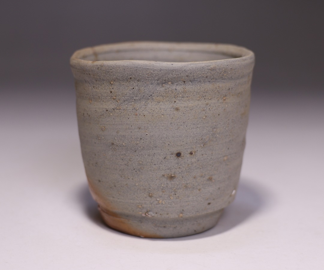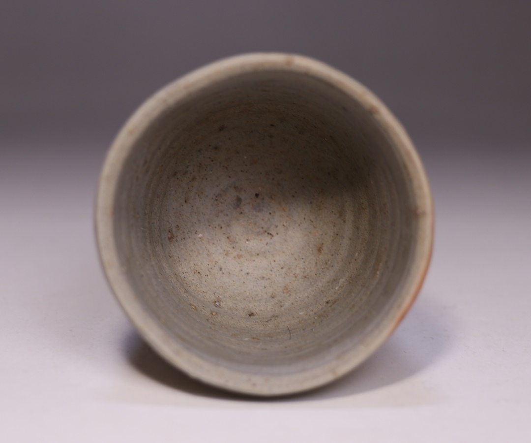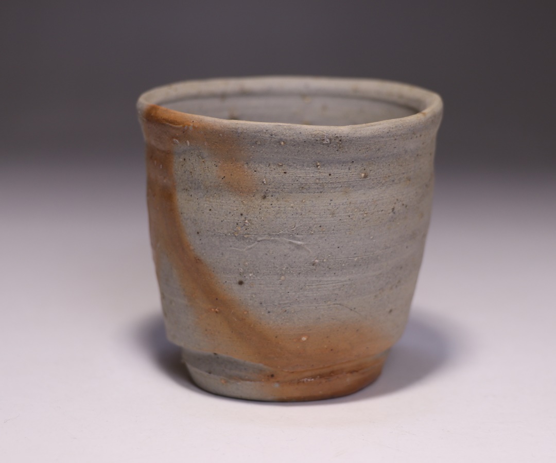円山窯にて焼き締めてしっとりとした肌合いとなった緋襷酒呑です。