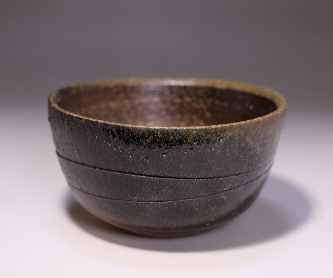 秋谷昌央先生の窯出しされたばかりの新作黒碗です。