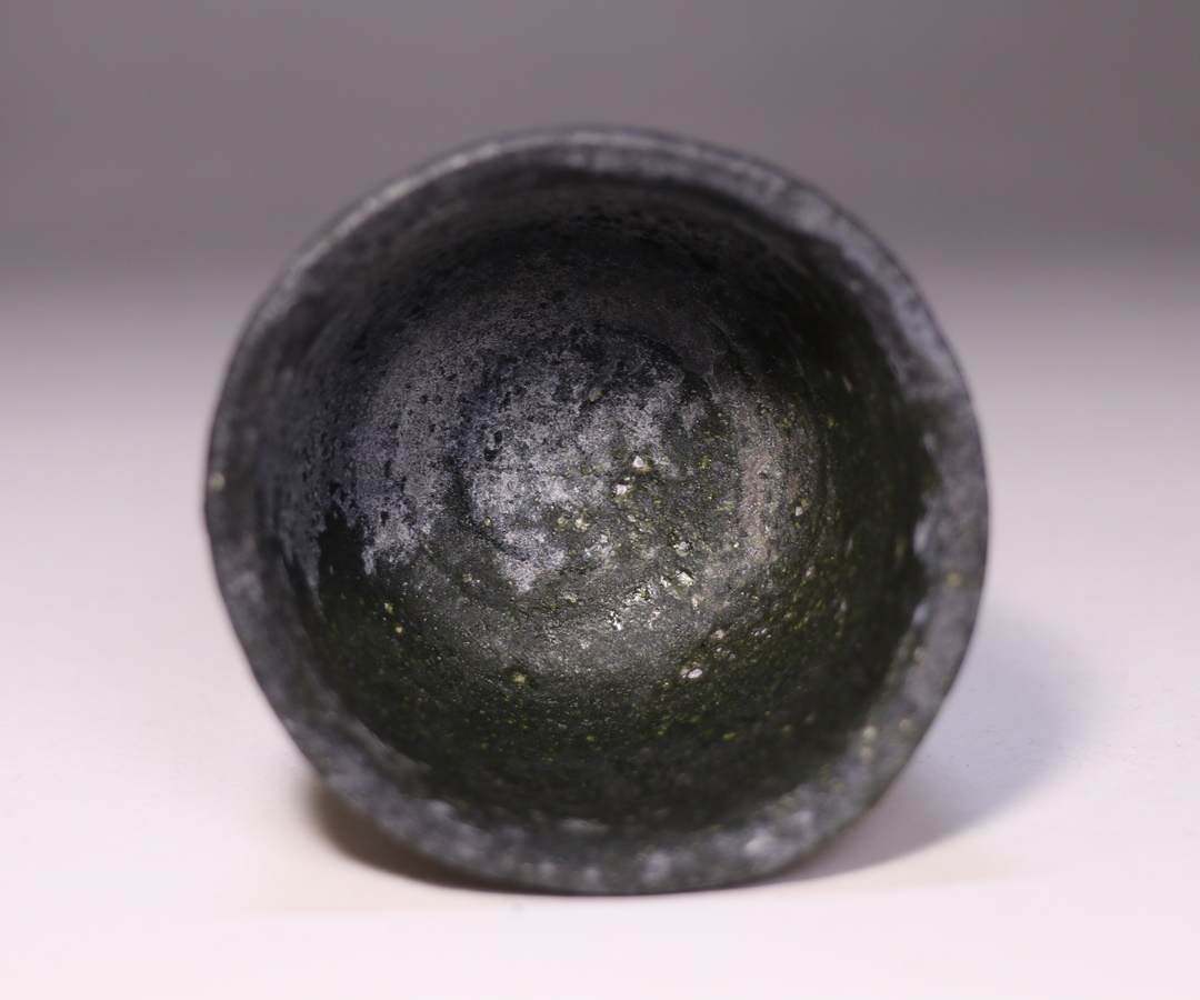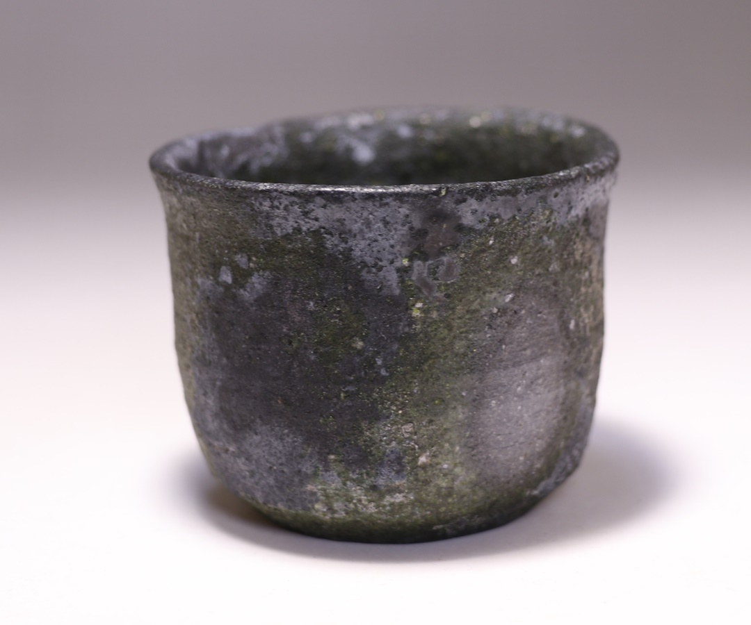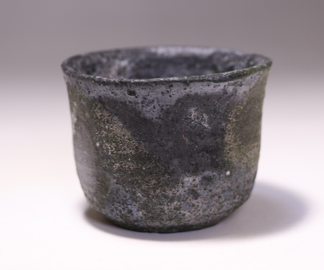 名にこだわらず探究心の赴くまま作陶する金重充宏先生の青備前桟切手酒盃です。