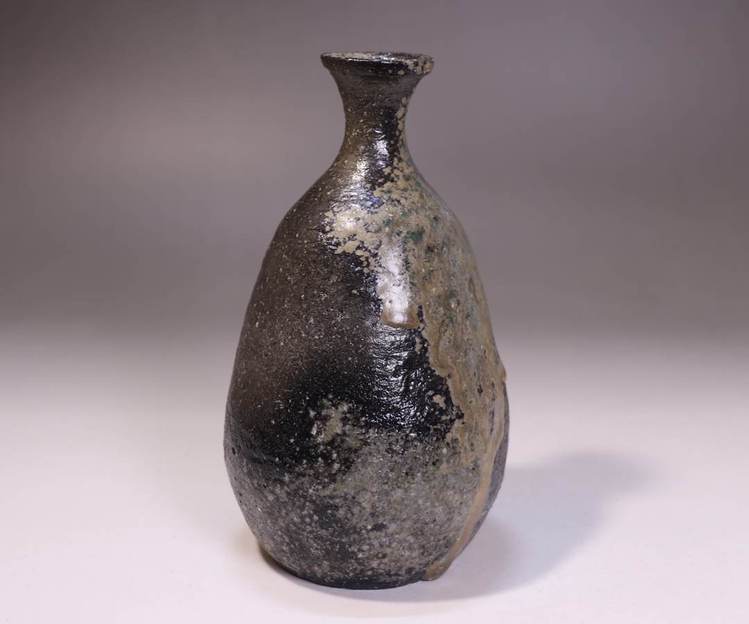 名にこだわらず探究心の赴くまま作陶する金重充宏先生の青備前色胡麻徳利です。
